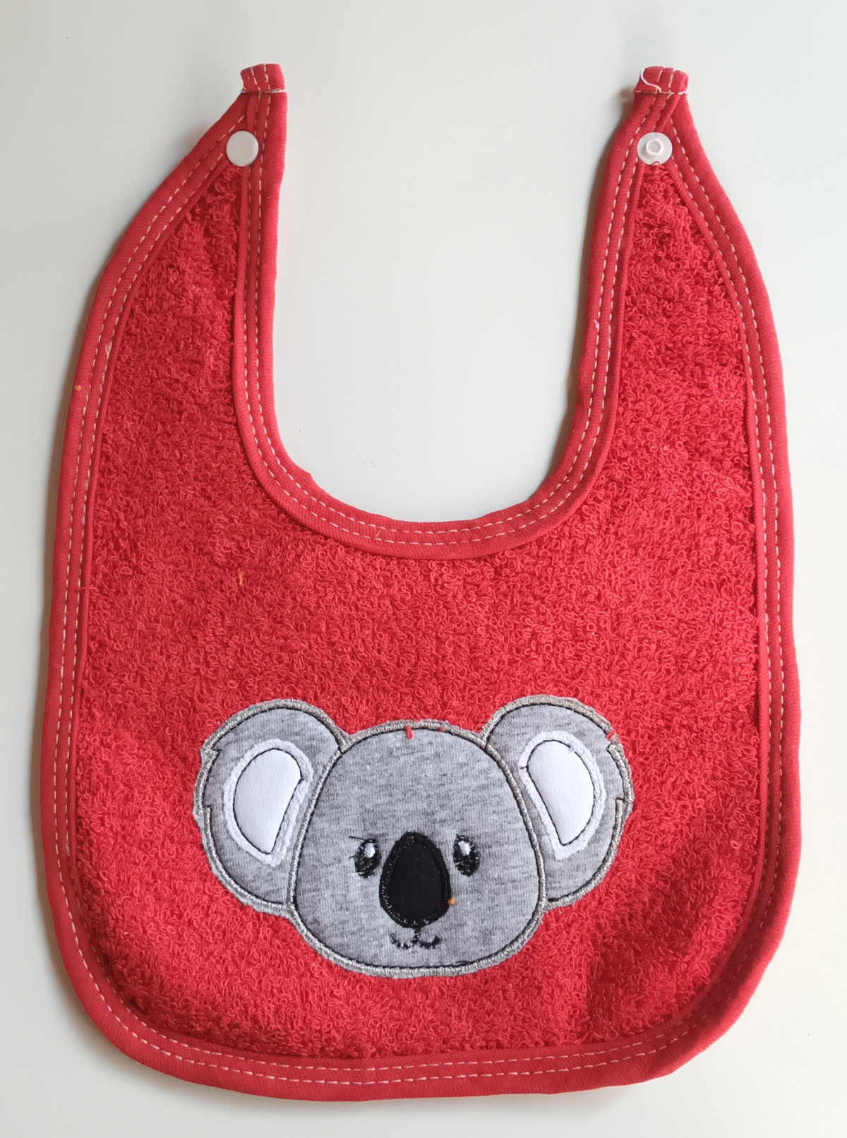Babero estampa koala, color rojo.