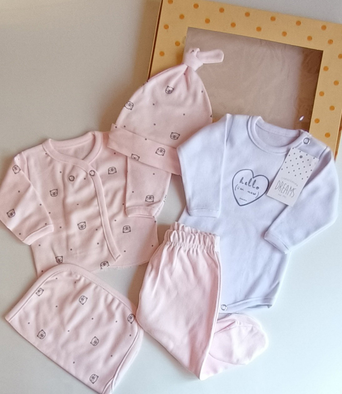 Set de cinco piezas de algodón.
